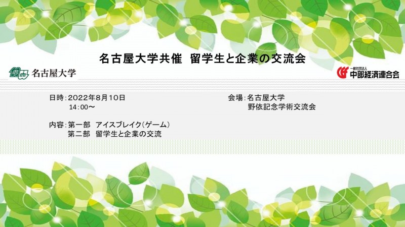 企業5社の交流会を名古屋大学と中部経済連合会の共催で実施しました。