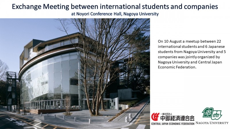 8月10日、名古屋大学・野依記念学術交流館で名古屋大学の留学生22名、日本人学生6名と